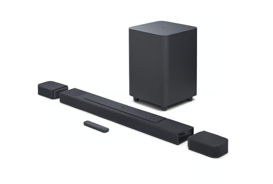 The JBL Bar 1000 is a premium 7.1.4-channel soundbar system designed to deliver an immersive home theater experience. With a total power output of 880W, it features detachable battery-powered surround speakers and four up-firing drivers—two in the main bar and two in the detachable speakers—that support Dolby Atmos® and DTS:X®, creating a true 3D sound environment without the need for additional wiring. The included 10” wireless subwoofer provides deep, precise bass, enhancing the overall audio performance. JBL’s PureVoice technology ensures clear dialogue even during intense scenes. Connectivity options include HDMI eARC, Bluetooth 5.0, and built-in Wi-Fi supporting AirPlay 2, Chromecast, and Alexa Multi-Room Music, allowing seamless streaming from various devices. The system also offers easy sound calibration via the JBL One App, ensuring optimal audio settings tailored to your room’s acoustics.